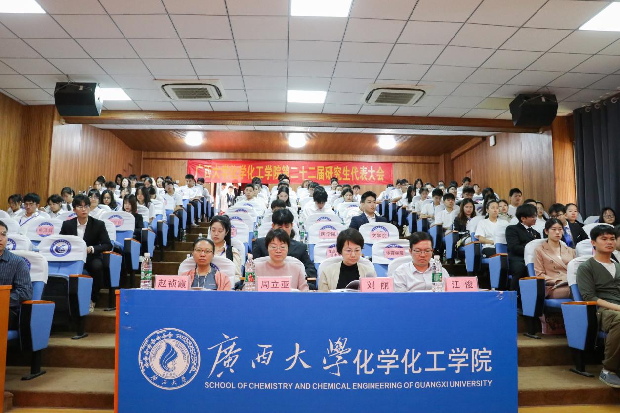 10月25日,广西大学化学化工学院第二十二次研究生代表大会在学院1号楼碳酸钙报告厅召开。学院党委书记、院长周立亚,党委副书记、纪委书记刘丽,副院长赵祯霞、江俊、许雪棠出席会议,学院研究生会全体成员、校研究生会及兄弟学院研究生会主席团代表参加会议。