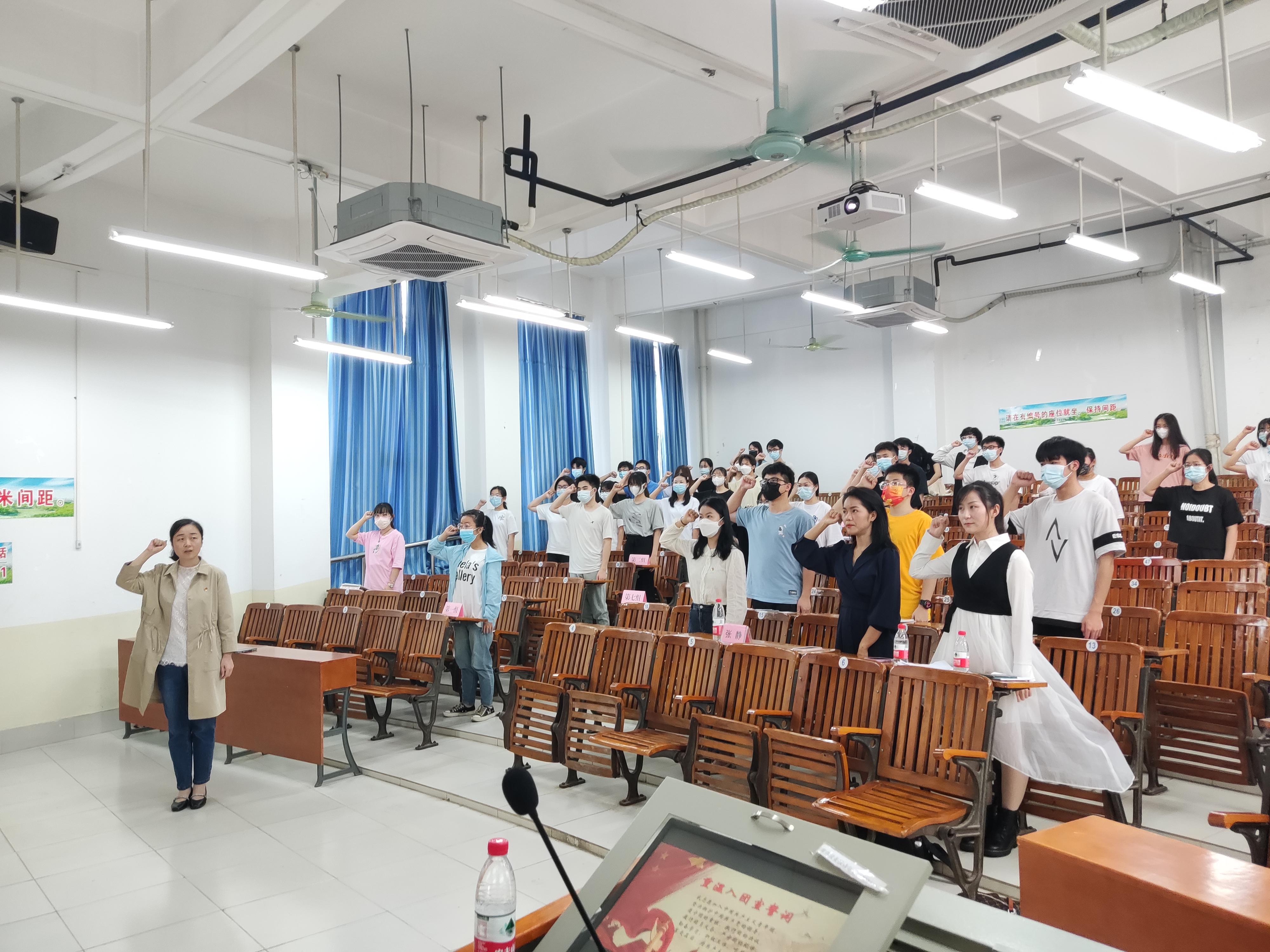 2022年4月23日,化学化工学院第49期团学班第一次线下课于10A-201教室举行。院团委书记张静老师出席了本次授课。
