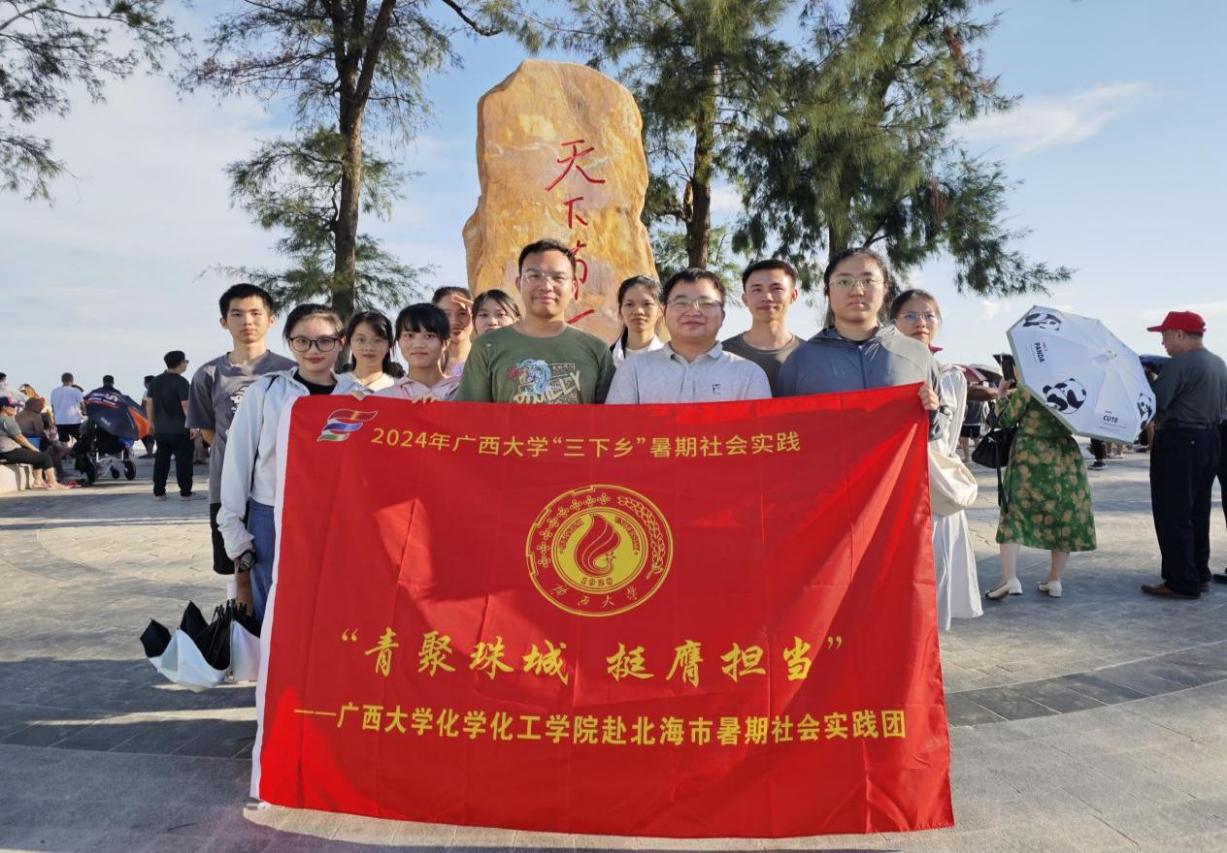 为增进学生对我国海岸线和海洋知识的了解,提升青年学生们的社会实践能力,树立勇于担当的奉献意识和保家护国的爱国主义精神,培养有理想、敢担当、能吃苦、肯奋斗的时代新人,7月20日至21日,广西大学化学化工学院团委副书记陆和凯、辅导员陈力源和杨秀泽带领化学化工学院暑期社会实践团前往广西北海市开展“青聚珠城,挺膺担当”暑期社会实践活动。