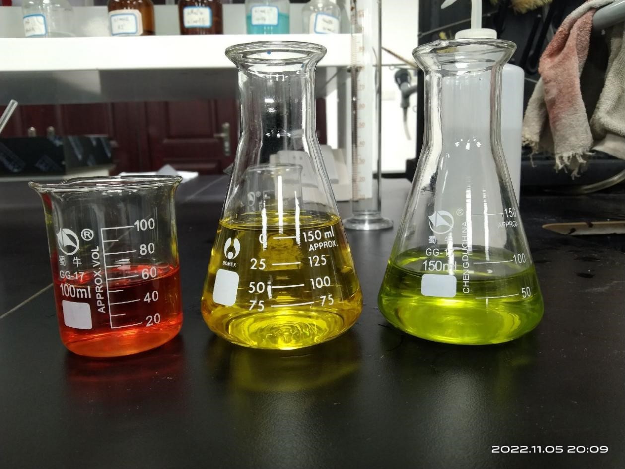 本次趣味实验以颜色变化为主题,包括两场小实验,实验名称分别为红绿灯实验和蓝瓶子实验。两场实验均涉及氧化还原反应中产生的颜色变化,前者为靓蓝胭脂红、葡萄糖和氧气参与的交替氧化还原反应,颜色变化为红绿灯的颜色元素即红、黄、绿;后者为亚甲基蓝和葡萄糖参与的可逆氧化还原反应,即无色与蓝色之间的变化。参与实验的同学对本次实验中发生的颜色变化表示很兴奋,对别的小组的颜色变化也很感兴趣,这或许就是化学实验的趣味所在吧。