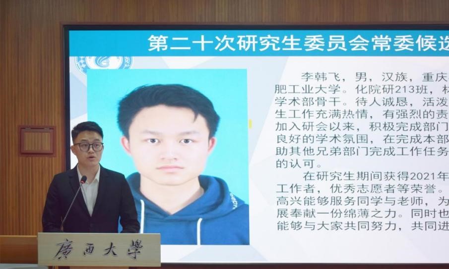 大会秉持“公平、公正、公开、择优”的原则,采取无记名投票的方式选举产生了第二十届研究生会主席团成员。李韩飞、邱逸晗、温蓉竹等当选。