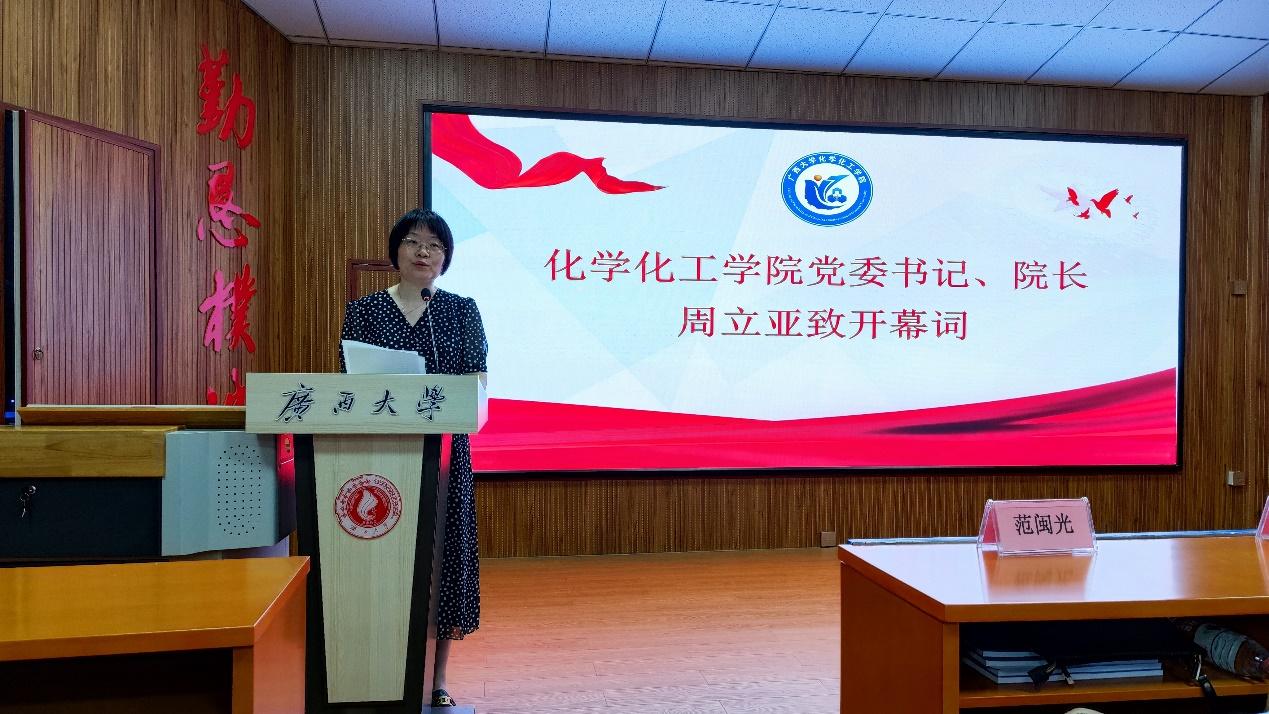 为活跃学术氛围,提升科研能力,化学化工学院举办第十六届研究生学术论坛。5月31日,论坛开幕式在学院一号楼阶梯教室举行。学院党委书记、院长周立亚出席开幕式并致辞。学院党委副书记刘丽、副院长段文贵、副院长范闽光、广西电化学能源材料重点实验室主任尹诗斌教授参加开幕式。
