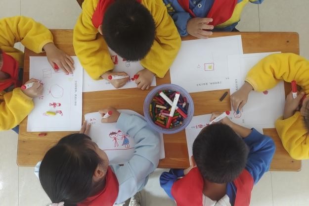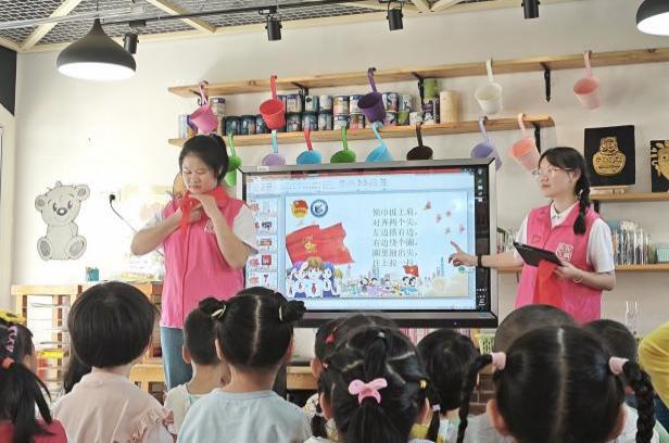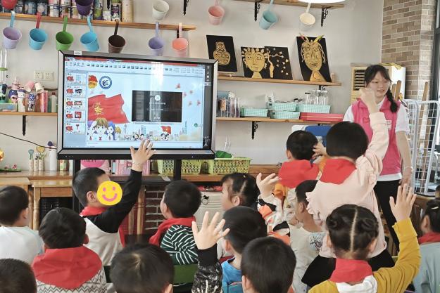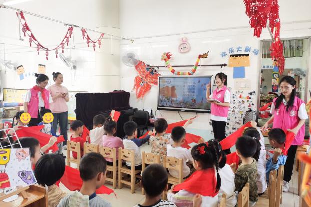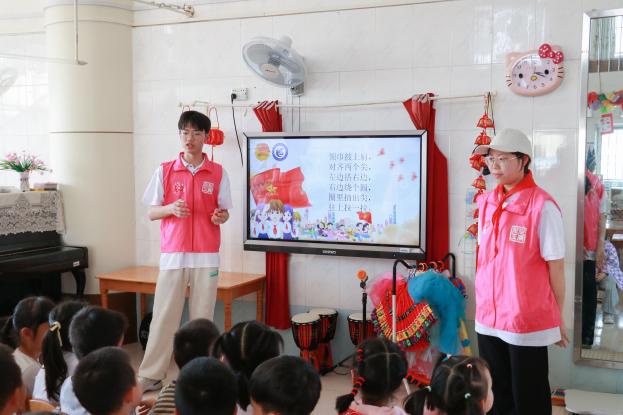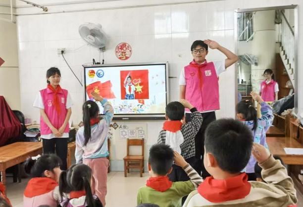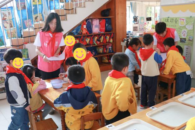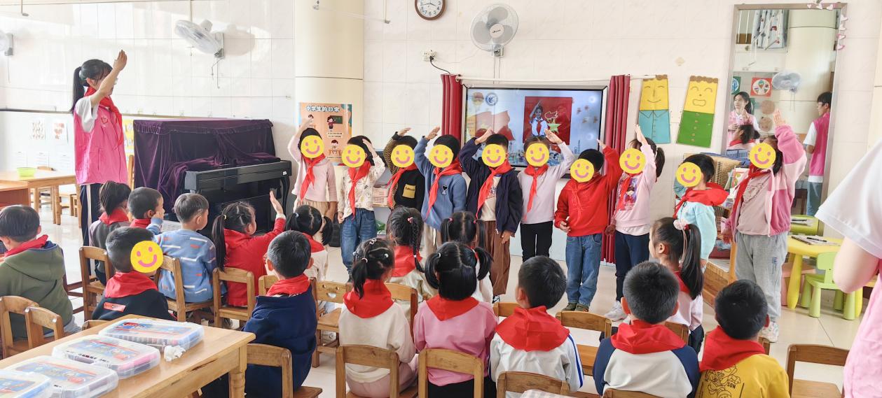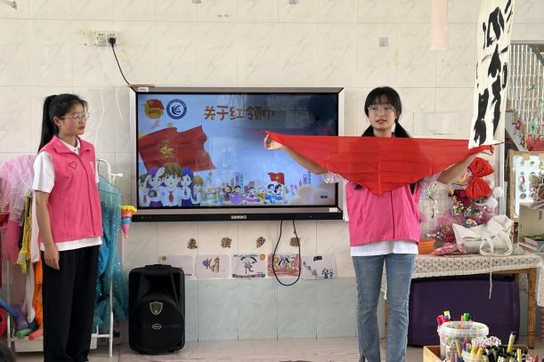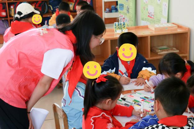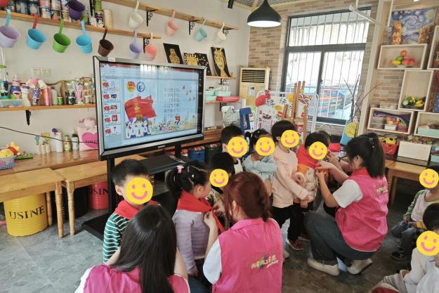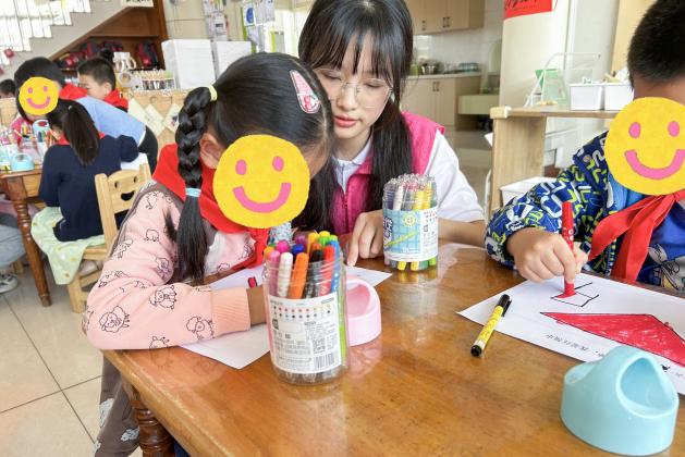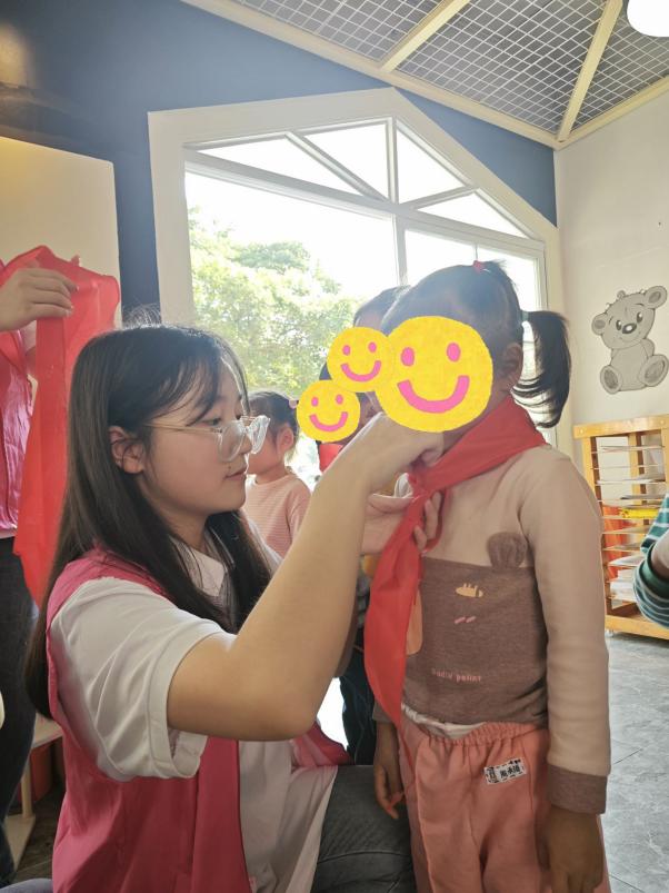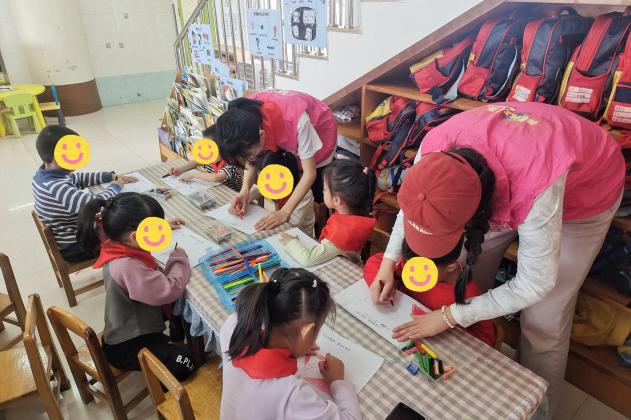 活动当天,志愿者还与孩子们一起聆听队歌,体验少先队员的入队仪式。而后进行创意绘画,在歌声和画笔于纸上的摩擦声中激发孩子们对成为少先队员的向往。