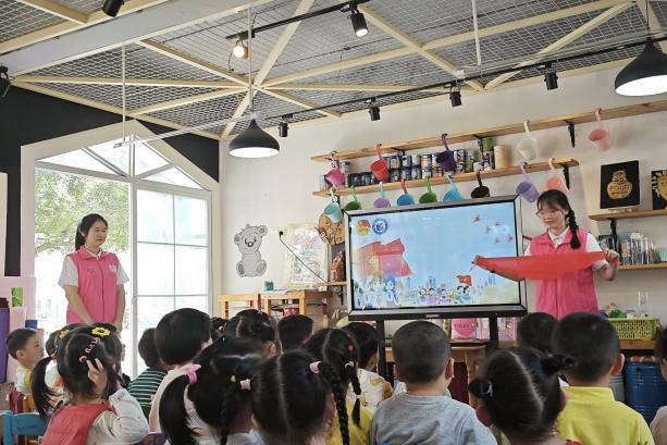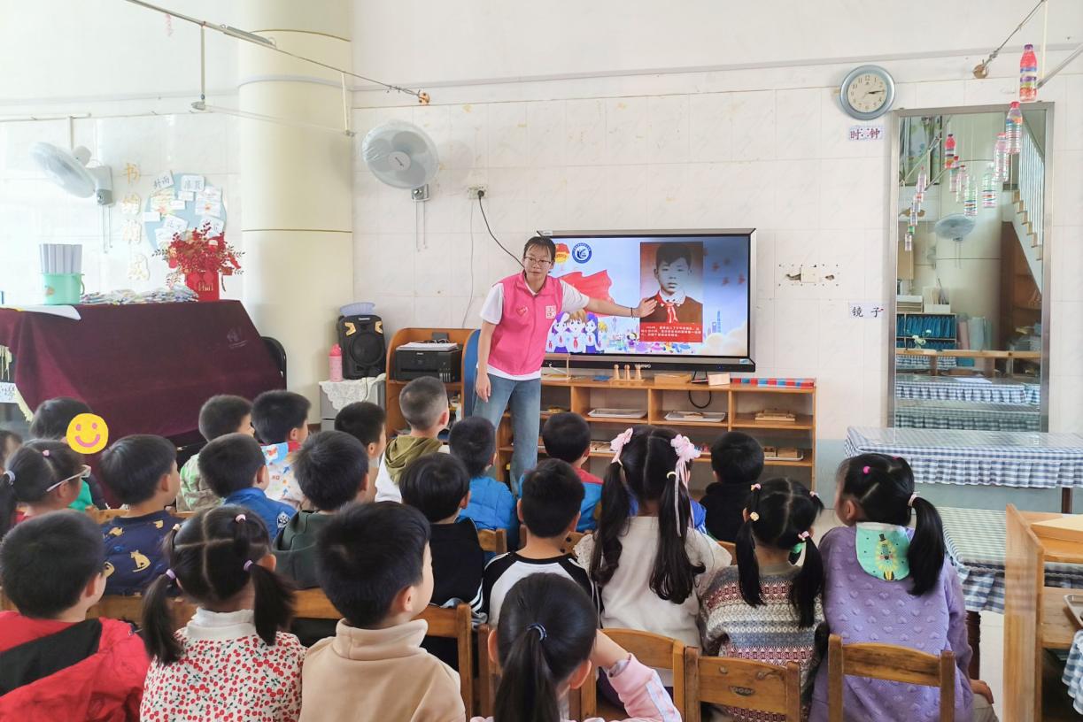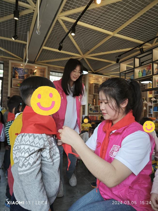 “鲜艳红领巾象征着热情与活力,正如乐于助人的雷锋叔叔那样......”志愿者以通俗易懂的语言,声情并茂地为孩子们讲述关于雷锋的故事,鼓励小朋友们要学会帮助他人。
