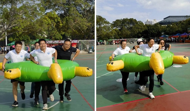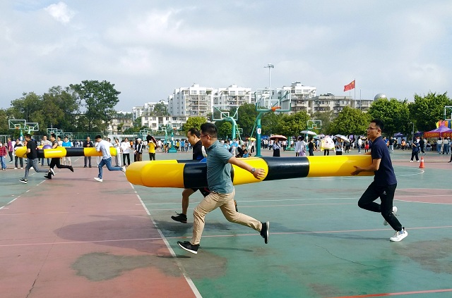 在考验团队配合与协作的竞游项目上,我院运动员获得了同舟共济项目第二名,篮球运球投篮接力项目第五名,男女胯下传球接力项目分别获得第九名与第五名。在十拿九稳、龟兔赛跑、击鼓颠球、跳绳、超级毛毛虫等项目中,我院虽然未能取得理想名次,但大家齐心协力积极参与,增进了教职工之间的团结和友谊,也收获了运动的快乐。