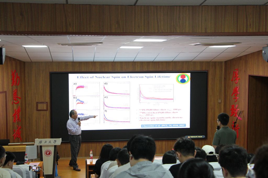 8月1日,加州大学圣克鲁兹分校化学和生物化学系张金中教授应邀来访,为我院师生作题为“金属卤化物钙钛矿团簇的光学特性及载流子”的学术报告。报告会由学院党委书记周立亚教授主持,近百名师生参加。