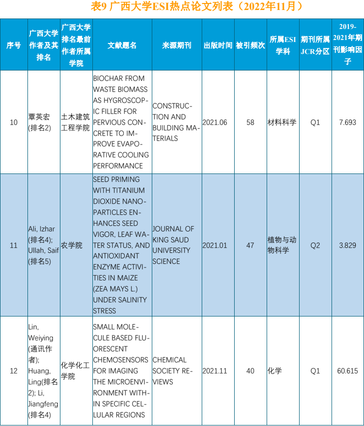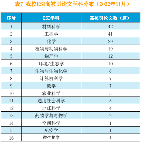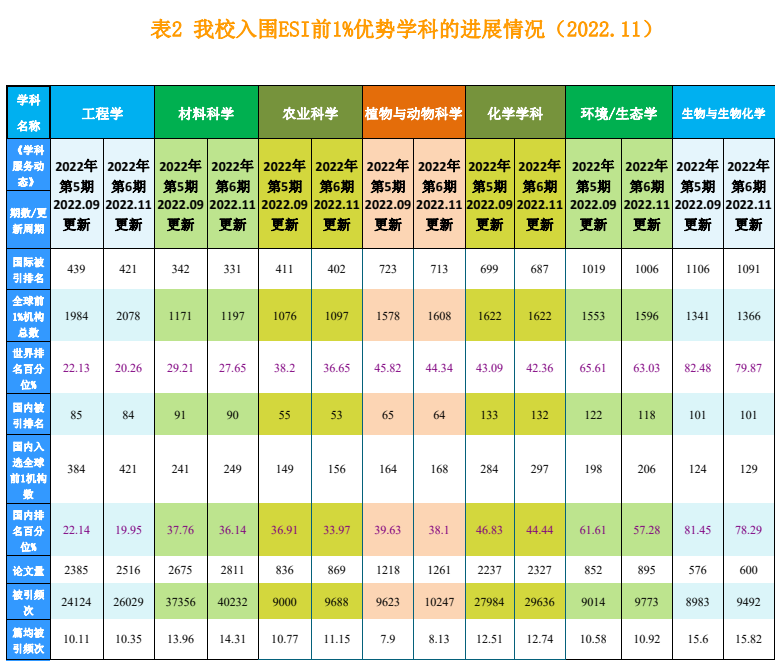 根据广西大学图书馆科学服务动态2022年第6期(总第39期)的数据,我院化学学科继续入选ESI前1%,学科全球排名与国内排名稳步上升,全球排名百分位较上期上升了0.73%;国内排名百分位上升了2.39%。