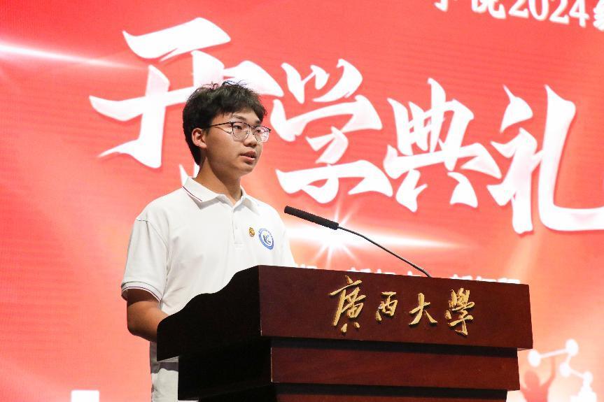 新生代表何沛桦与老生代表张与铨相继发言。何沛桦同学深情致谢成长路上的支持者,号召同窗们并肩同行,以青春之名,共绘未来斑斓画卷。张与铨同学对新生的到来致以诚挚祝福,并分享大学生活的三字箴言:勤奋、奉献、探索,勉励大家怀抱梦想,让大学生活因勤奋、奉献与探索而更加绚丽多彩。