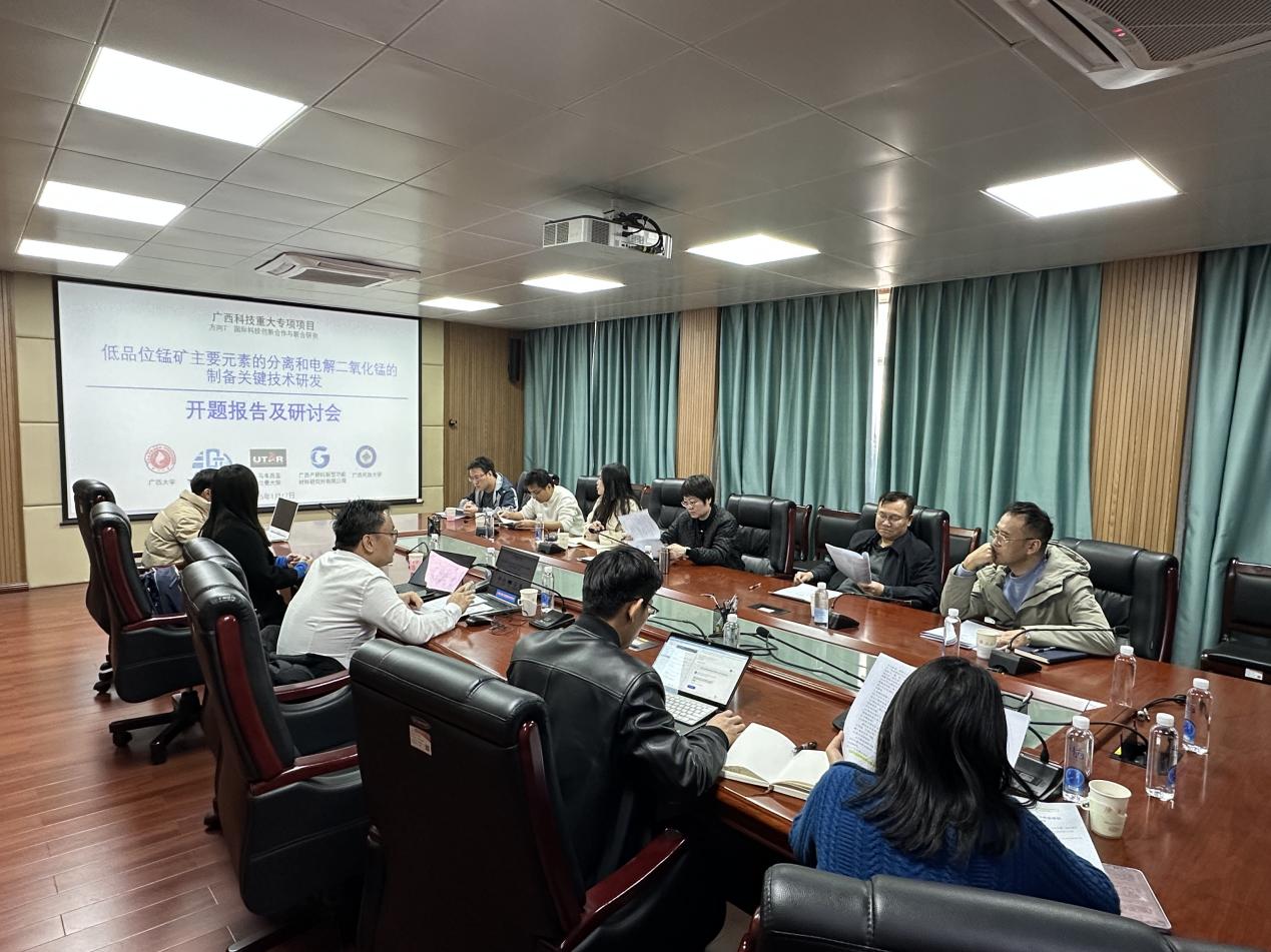 1月17日,由我校牵头,广西汇元锰业有限责任公司、马来西亚拉曼大学(Universiti Tunku Abdul Rahman)、广西产研院新型功能材料研究所有限公司、广西民族大学4家单位联合承担的广西科技重大专项“低品位锰矿主要元素的分离和电解二氧化锰的制备关键技术研发”开题报告及研讨会在我校顺利召开。