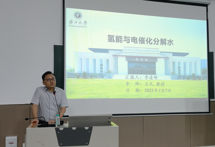首场报告《氢能与电催化分解水》由化学工程与技术2019级博士研究生主讲,导师王凡教授主持,学院近百名师生聆听了报告。李凌峰同学给大家介绍了当前电催化分解水制氢及其催化剂研究进展,并展示了一种新颖的准平行纳米片阵列的生长机理及其催化性能的研究结果。会后同学们与李凌峰同学进行了深入的交流。