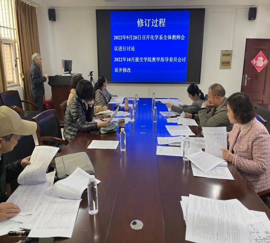 应用化学专业、化学专业和化学工程与工艺专业分别就人才培养目标制定、学分优化、创新能力培养、专业特色培养、毕业要求达成等几个方面的制定情况进行了详细汇报。教学指导委员会成员为学院人才培养方案的修订提出建设性指导意见。