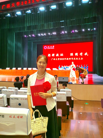 面对获得的硕果和荣誉,童张法教授十分谦虚,他说:“本人获得了2022年度广西自然科学二等奖和连续两年指导的博士生获得优秀学位论文,今年得到了学校教师节的表彰,这主要是源于自己对学科专业的钟爱和对教学科研的执着,也说明教学与科研是相互促进的。我始终认为培养优秀的人才是我们教师职业发展的初心!”
