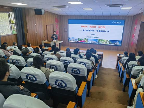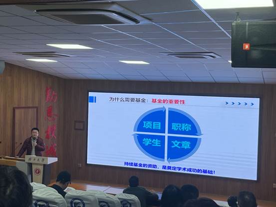 首先,赵副院长先给大家就近几年申报、获批的情况进行了总结和分析,并认真的解读了今年的改革举措。紧接着,校长助理、副教务长、发展规划处处长赵双良教授为老师们详细解读了国家基金项目的政策要求和评审标准。他围绕着新时代、新使命、新作为—潜心教学科研,争做创新人才,强调了基础研究的重要性,鼓励师生们要勇于创新、敢于探索,为推动学科发展做出贡献。同时,学院的朱园勤老师和何会兵老师也分别做了相关的经验分享。朱老师结合自己的申报经历,为大家传授了撰写标书的心得体会;何老师则从青年教师的角度,为大家分析了国基项目的注意事项。三位老师的分享干货满满,让在座的师生受益匪浅。
