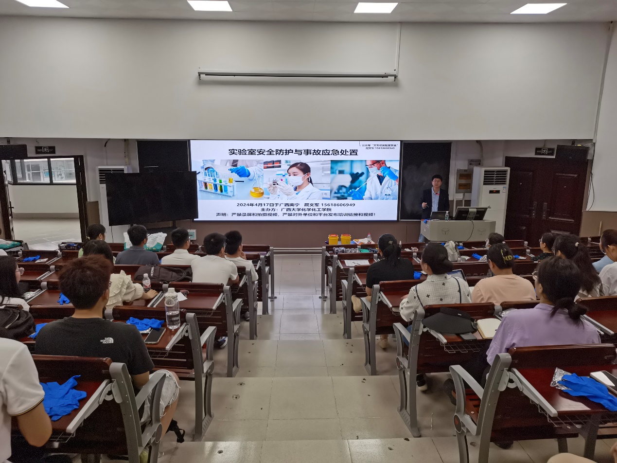 4月17日,我院在化工3号楼A501教室举办实验室安全教育培训活动,邀请实验室安全专家屈文军作题为“实验室安全防护与事故应急处置”的培训。副院长许雪棠主持活动,教师及学生代表100余人参加培训。 在培训中,屈文军引用多个实验室安全事故案例,生动形象地为与会人员展开安全知识培训,重点讲解了实验室安全事故应急处置方法并强调了实验室安全的重要性。培训还通过实操、互动等形式让与会人员加深对实验室安全各方面的认识。 此次培训,进一步提升我院师生的实验室安全意识及实验室安全事故应急处置能力,筑牢安全防线。