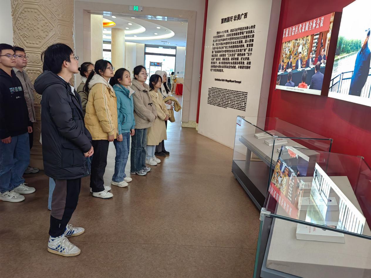 活动当天,支部成员们怀着崇敬与期待走进广西展览馆,依次参观了中国共产党广西历史展览、广西脱贫攻坚成就展和奋进新时代主题成就展广西单元。展览馆中丰富的图片、详实的文字以及珍贵的实物,吸引着大家的目光,从早期党组织在广西的建立和艰苦卓绝的革命斗争,到社会主义建设和改革开放时期的不断探索与发展,再到奋进新时代的伟大成就,大家仿佛穿越时空,亲身感受着历史的波澜壮阔。面对一幅幅珍贵的历史画面和一件件承载着记忆的实物,党员们内心受到强烈震撼,深刻体会到了先辈们的坚定信念和无私奉献精神,也深入了解了中国共产党在广西的百年奋斗历程。