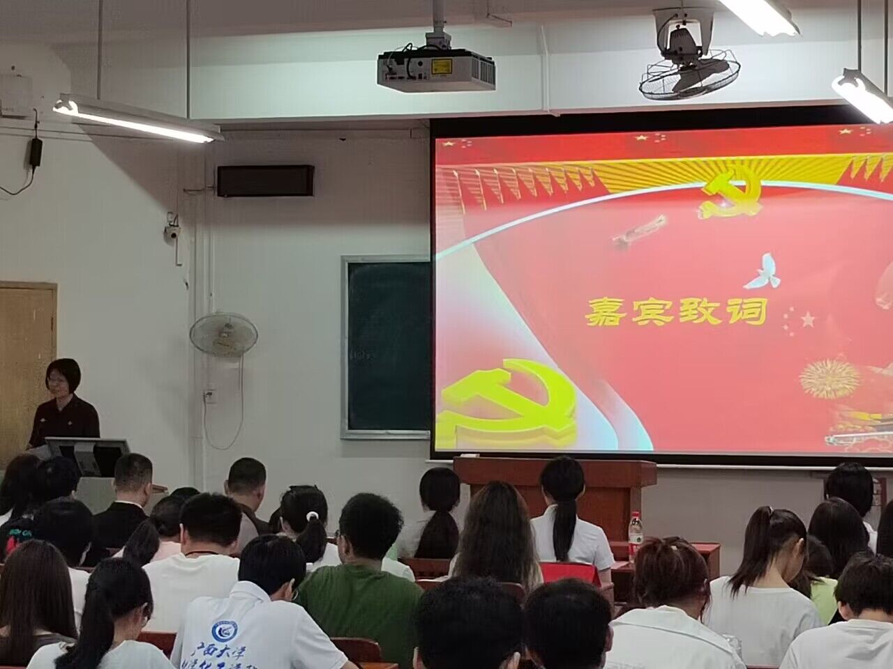 周书记首先代表学院党委对全体参会学员表示热烈祝贺,同时表示学员们要努力学习入党知识,不断端正入党动机,提高入党觉悟,积极为人民服务,全身心投入到新时代中国特色社会主义伟大事业,投入到共产主义事业的建设当中去。呼吁学员们要对自身高标准,严要求。以实事求是的作风,严谨的纪律响应党的号召,积极向党组织靠拢。并且表达了对参与本次积极分子班同学的期许,希望他们好好努力,认真学习,不断提升思想觉悟,早日加入到党的队伍中来。