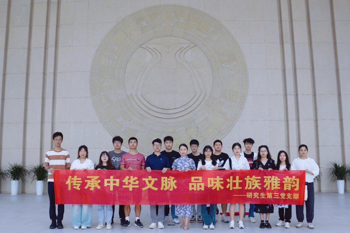 为深入开展学习贯彻习近平新时代中国特色社会主义思想主题教育,坚定文化自信,厚植家国情怀,2023年5月23日下午,化学化工学院研究生第三党支部组织党员同志赴广西壮族自治区博物馆开展“传承中华文脉,品味壮族雅韵”主题党日活动。
