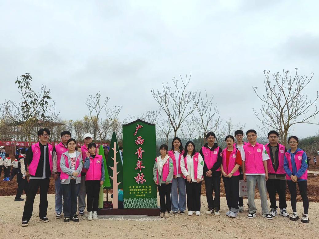为进一步推进生态文明建设,倡导全民植绿护绿爱绿理念,共青团广西区委、自治区党委区直机关工委、自治区林业局联合开展了“美丽家园,青春行动”——2024年全区各族各界青年代表义务植树活动。该活动于3月17日在广西七坡花卉产业园举行,我院研究生第五党支部积极参与其中,支部成员深入学习贯彻党的二十大精神,尊重自然、顺应自然、保护自然,用植树造林的方式,描绘壮美广西画卷的青春底色。