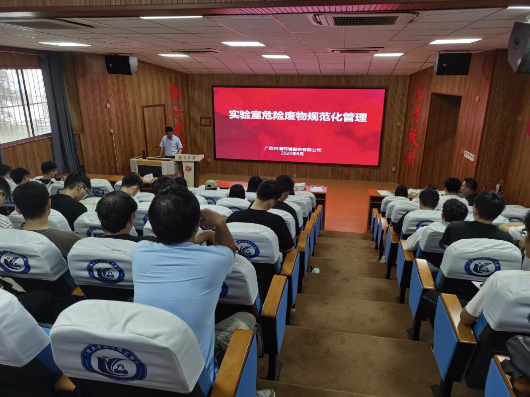 On June 28, the 2024 Guangxi University Laboratory hazardous waste standardized Management training meeting was held in the Calcium carbonate lecture Hall of Building 1 of our hospital, and relevant professionals from Guangxi Keqing Environmental Services Co., Ltd. were invited to conduct training. Teachers of our laboratory center, laboratory safety management personnel, hazardous waste disposal personnel of each laboratory, and hazardous waste management students of each research group (laboratory) participated in the training meeting.