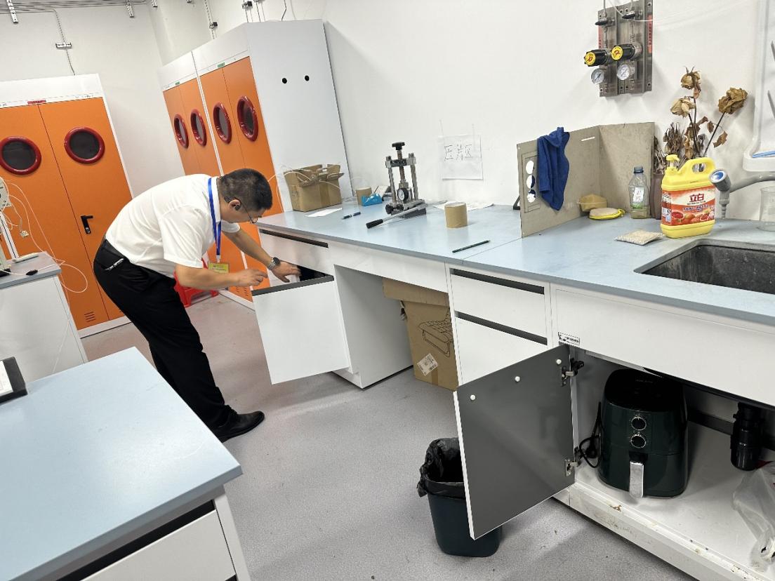 During the inspection, Liu Li, deputy secretary of the Party Committee of the college and secretary of the Commission for Discipline Inspection, asked the laboratory management staff on the spot, carefully consulted the laboratory safety files, Liu Li put forward rectification suggestions and work requirements on the spot for the problems found in the inspection, and the laboratories should seriously implement the requirements of the relevant documents of the school and the college, attach great importance to the laboratory safety work during the holidays, and actively carry out laboratory safety self-inspection work. Eliminate security risks in a timely manner.
