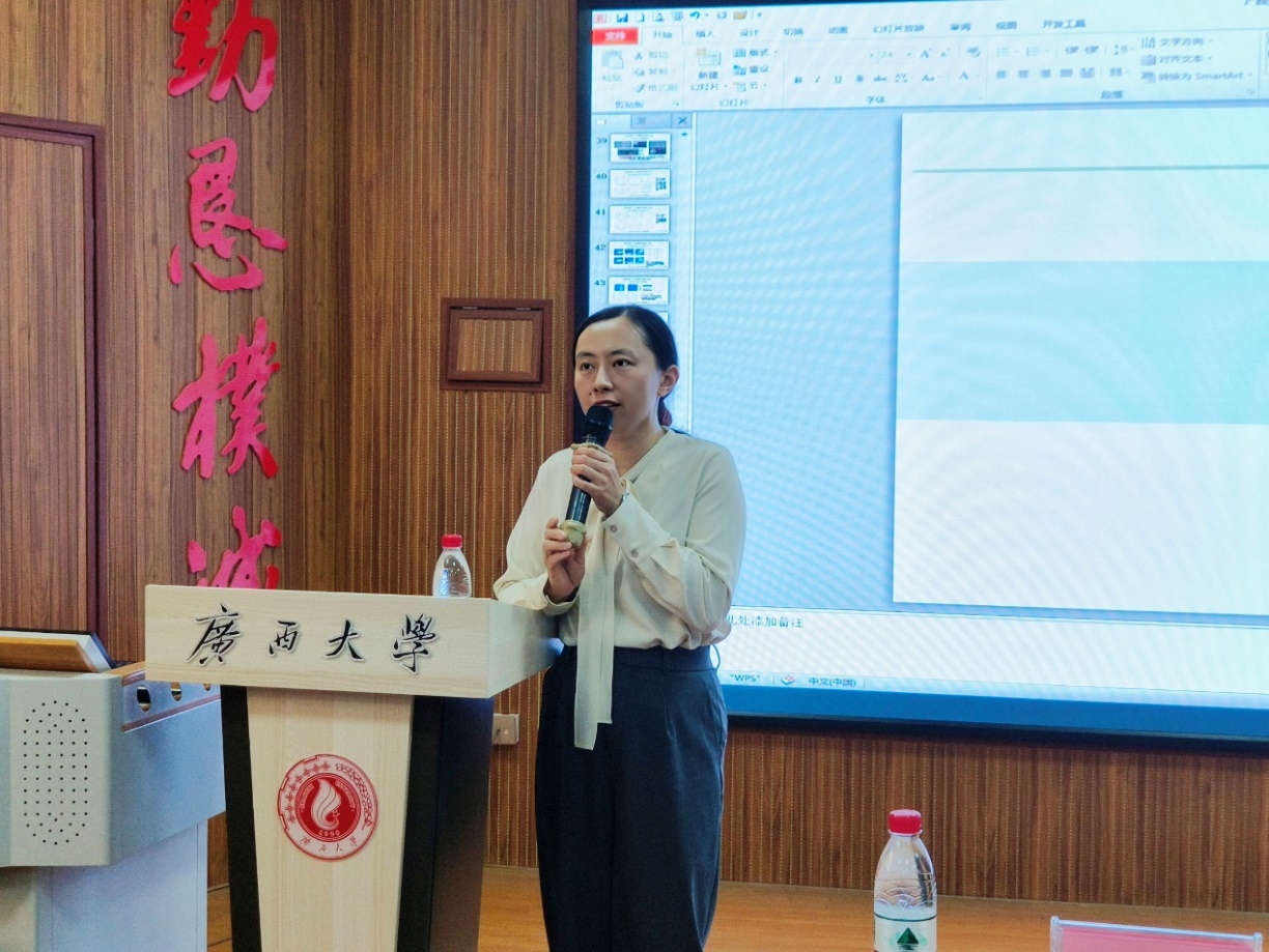 The picture shows Professor Xu Jing sharing her report