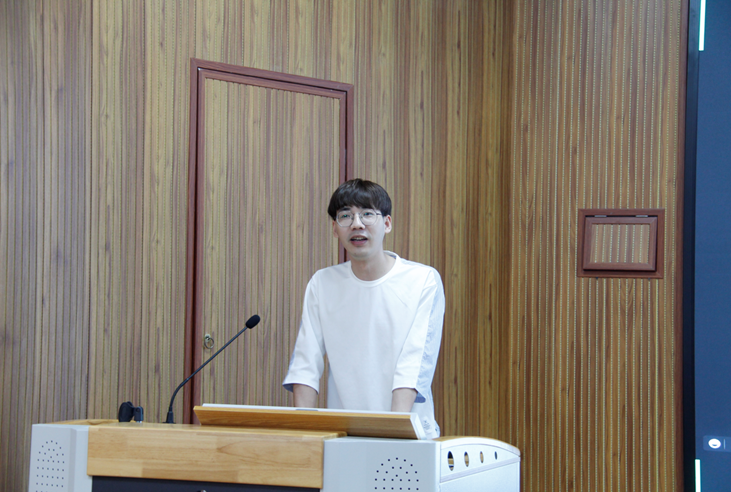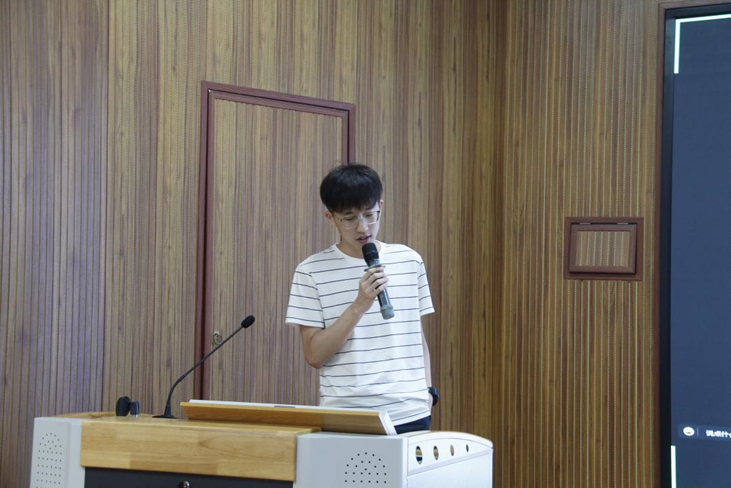 Then, Wang Xingyao gave a speech on the summary of learning experience and scientific research achievements, research work report and sharing of experience and experience. In the experience, he explained with three "do not" : do not disconnect with the tutor, have a problem feedback; Do not fight alone, mutual help and support can make you twice as effective; Do not draw a prison, self-restraint, thinking interaction and collision can maximize the efficiency of scientific research.